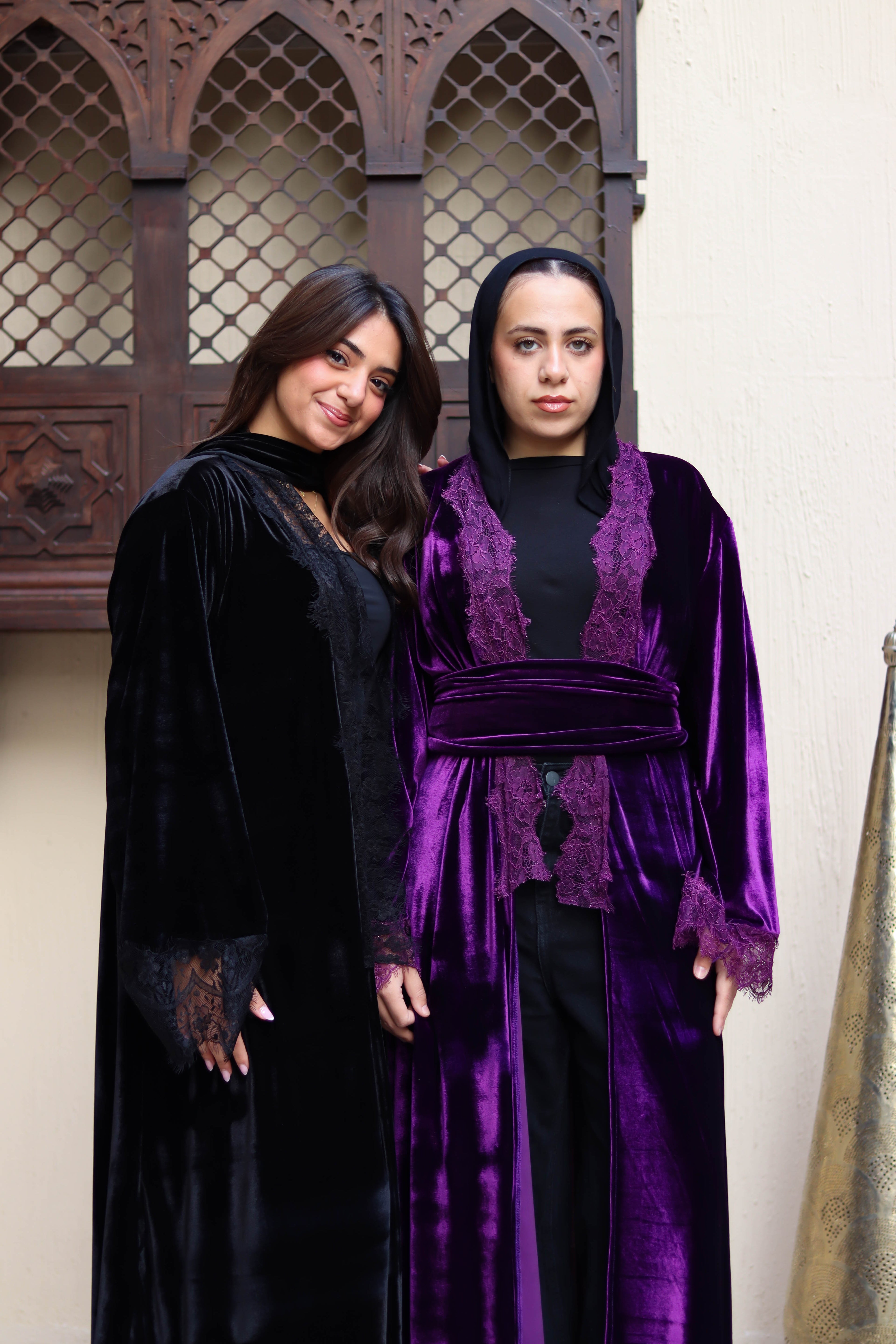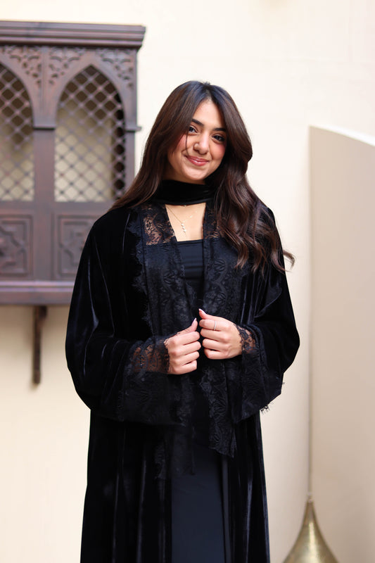 Black velvet lace kaftan